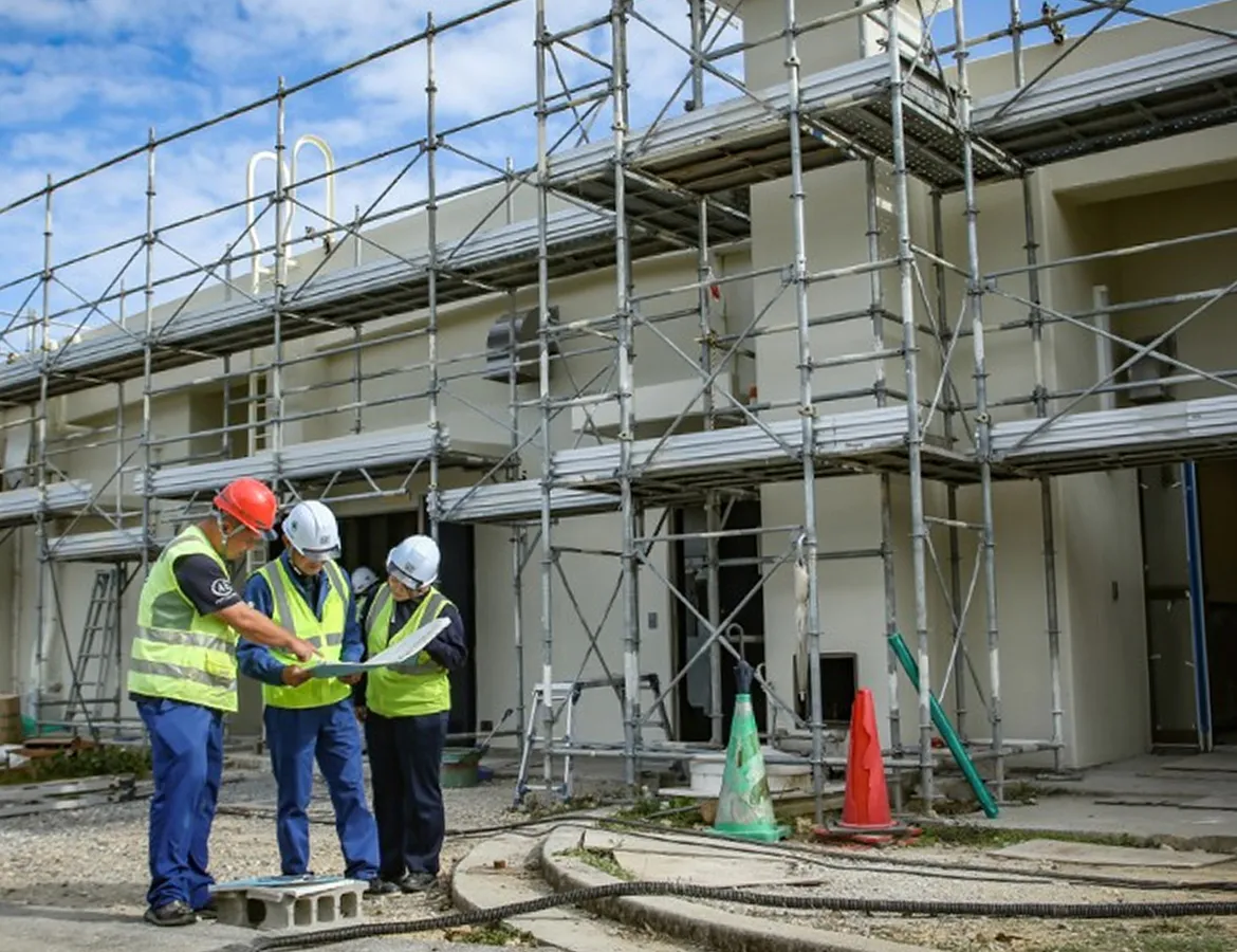 バイリンガル体制と国内外の資材調達力、国際基準の安全・品質管理を強みに、建設企業様と共に沖縄から世界基準のプロジェクトを推進。60年の信頼を礎にパートナーを募集しています。
