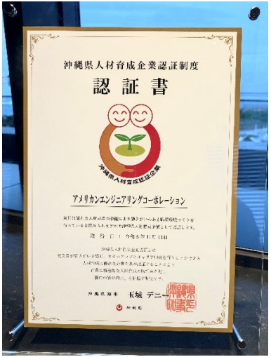 アメリカンエンジニアリングコーポレーション(AEC)は2024年11月19日付で、沖縄県より「沖縄県人材育成企業」に認証されました。