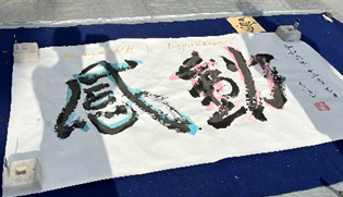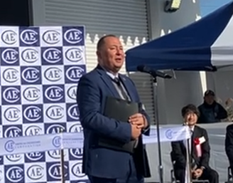 2024 年 12 月 19 日に執り行われた落成式では、書家の坂口赤道さんによる華麗なパフォーマンスで幕を開け、弊社代表ならびに岩国市⾧の挨拶が行われました。