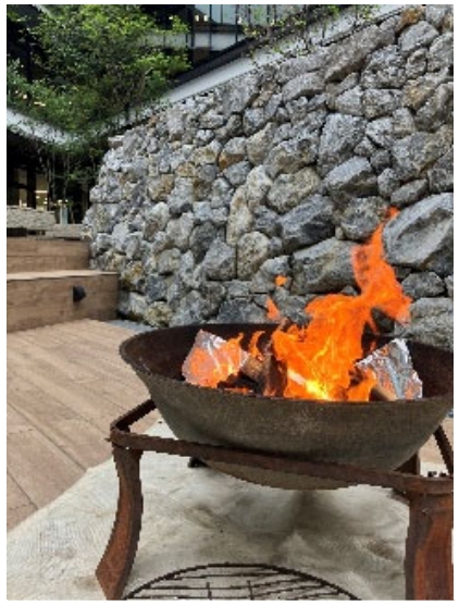 講演後には、⼼と体をリフレッシュするための焚⽕プログラムを中庭で実施しました。