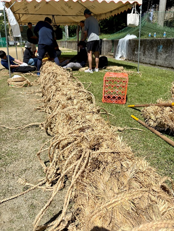 この大会に向けて、公共工事部から10名の社員がボランティアとして参加し、地域の皆さまと共に綱編みの作業に汗を流しました。