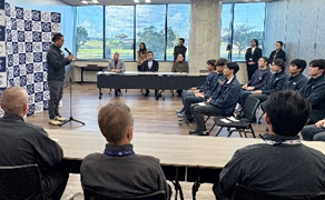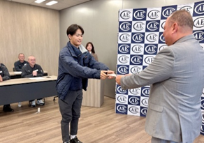 AEC では、社員一人ひとりの成長を企業の力と考え、人材育成に力を入れています。 二十歳という節目に、会社として若手の成長や挑戦をそっと後押したい——そのような気持ちを込めて、毎年この式を行っています。
