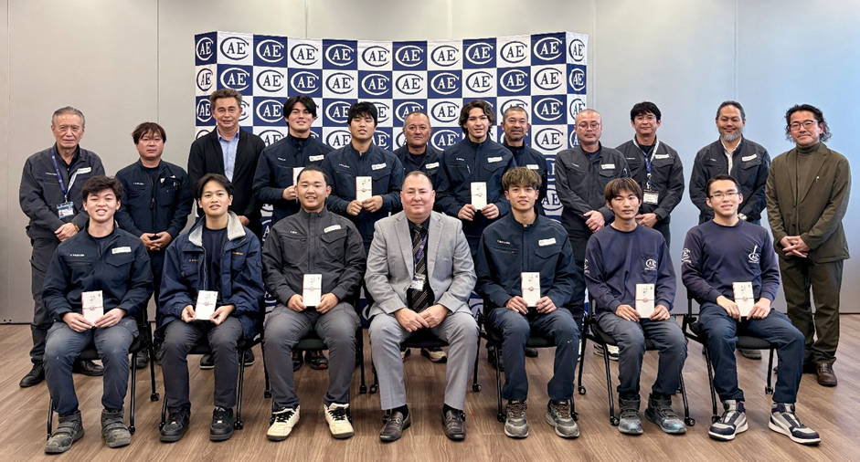 仲間と社会のつながりの中で育つ、若手社員へのエール 2026年1月9日、アメリカンエンジニアリングコーポレーション(AEC)本社にて、毎年恒例の「二十歳のお祝い式」を開催しました。 今年、人生の大きな節目である二十歳を迎えた社員は 9 名。成人の日を前に、対象者へお祝い金を贈呈しました。 AEC では、社員一人ひとりの成長を企業の力と考え、人材育成に力を入れています。 二十歳という節目に、会社として若手の成長や挑戦をそっと後押したい——そのような気持ちを込めて、毎年この式を行っています。 式典では社長より、「大人とは、自分で選び、その結果に誠実に向き合える人。仕事は決して一人では完結しません。 […]