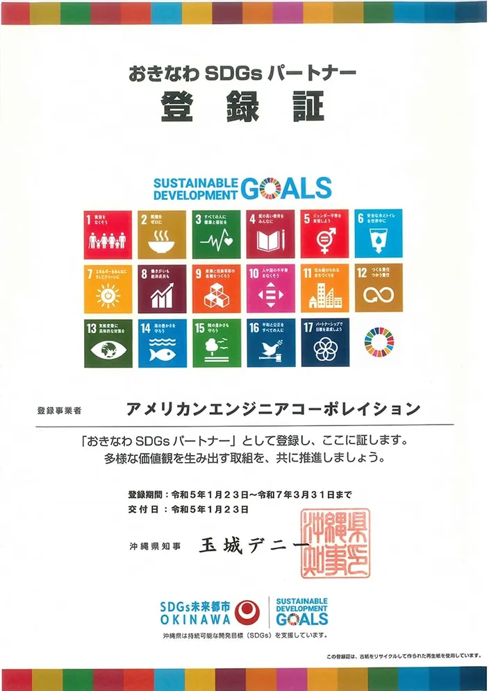 「おきなわSDGsパートナー」として登録いただきました。